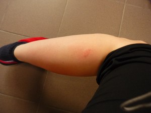 Dan heb je je zondag gespendeerd met pintjes, picons en teveel mensen die trakteren en dan word je de maandagochtend wakker met maar één iets dat je ambeteert: twee vreselijke spinnenbeten! (en ziehier ook mijn fantastische rode pantoffels die ik meteen weer aandoe als ik straks terug thuis ben:)