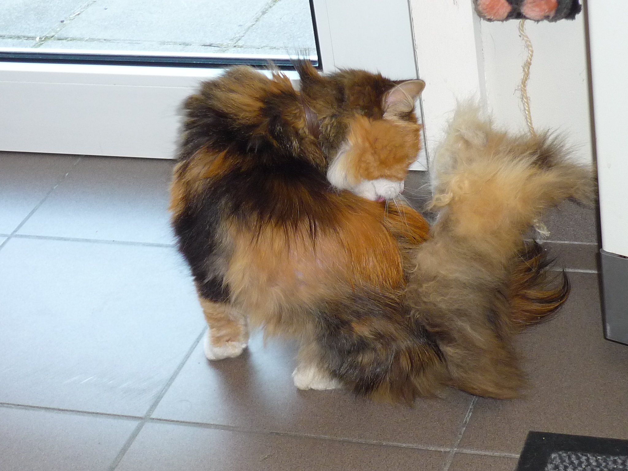 Holy…! Marbel is haar winterjas aan het verliezen. Het is een kwestie van uren of dagen voor het volledig vestje er af valt. Onder het “jasje” zit gelukkig een mooie nieuwe vacht en geen kale plekken. Zo moet ze niet door het leven gaan als zo’n verrompelde naaktkat. Hoewel zo’n kletse kat wel iets heeft…mijn compassie vooral, ze zien er zo zielig uit dat je precies niet anders kan dan ze te aaien. (wat op zich ook een vreemde ervaring is). Ik vermoed dat ik geluk heb met het feit dat ze haar haar in pakken verliest en niet haartje per haartje. Voor een langharige kat te zijn heb ik weinig haarmiserie. Zij daarentegen is wel geambeteerd van de bengelende tribble op haar rug. Wat een tribble was dat wist ik ook niet, tot Shellac de gelijkenis met de StartTrek-figuur al heel lang geleden maakte op facebook, merci daarvoor trouwens! Wie het freaky ding in zijn hof zal vinden, die zal ook eens raar opkijken. Een rost-zwarte homp haar, beam me up scotty… (of is dat van een andere freakfilm?)