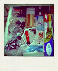 In ieder huis waar ik al gewoond heb heb ik er één gecreëerd denk ik: een brolschuif. De enige schuif waar alles in terechtkomt dat elders precies geen plaats lijkt te vinden. Het materiaal dat te min is om bij het bestek te behoren “Oh neen, we gaan toch geen plaklint herbergen?” fluistert de vork dan waarschijnlijk tegen de messen. In de brolschuif liggen in mijn geval 5 rolletjes plaklint, allemaal reeds begonnen. Ze liggen niet bij elkaar, neen, ze liggen over de volledige schuif verspreid. Samen met de pritt, de 7 luciferdoosjes en het verloren pakje zakdoekjes. Het is in die schuif dat ik een schoenlint moet gaan zoeken want blijkbaar liggen er massa’s in te wentelen. Ooit waren die mooi opgerold….ooit was die schuif leeg. Er zijn van die dagen dat de schuif mij tegensteekt. Vooral als ik ze opendoe en ze niet helemaal kan openen omdat er iets stropt aan de achterkant ergens. Vermoedelijk kan ik het zo’n 9 keer verdragen dat het stropt. De 10e keer graai ik tot ze weer openkan. Vandaag is de druppel. De prestigevorkenschuif kreeg een blinkbeurt, de brolschuif kan niet achterblijven.