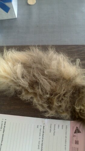 De kat is weer een deel van zichzelf verloren.  Het is al de eerste keer niet dat ze zo’n stukken haar achterlaat.  Deze keer lag dit mooi aan de voordeur.  Gelukkig weet ik na 4 jaar al wat het is maar het zou toch kunnen doorgaan voor een uitgeputte rat.  Of een haarstukje voor iemand met een klein hoofdje.