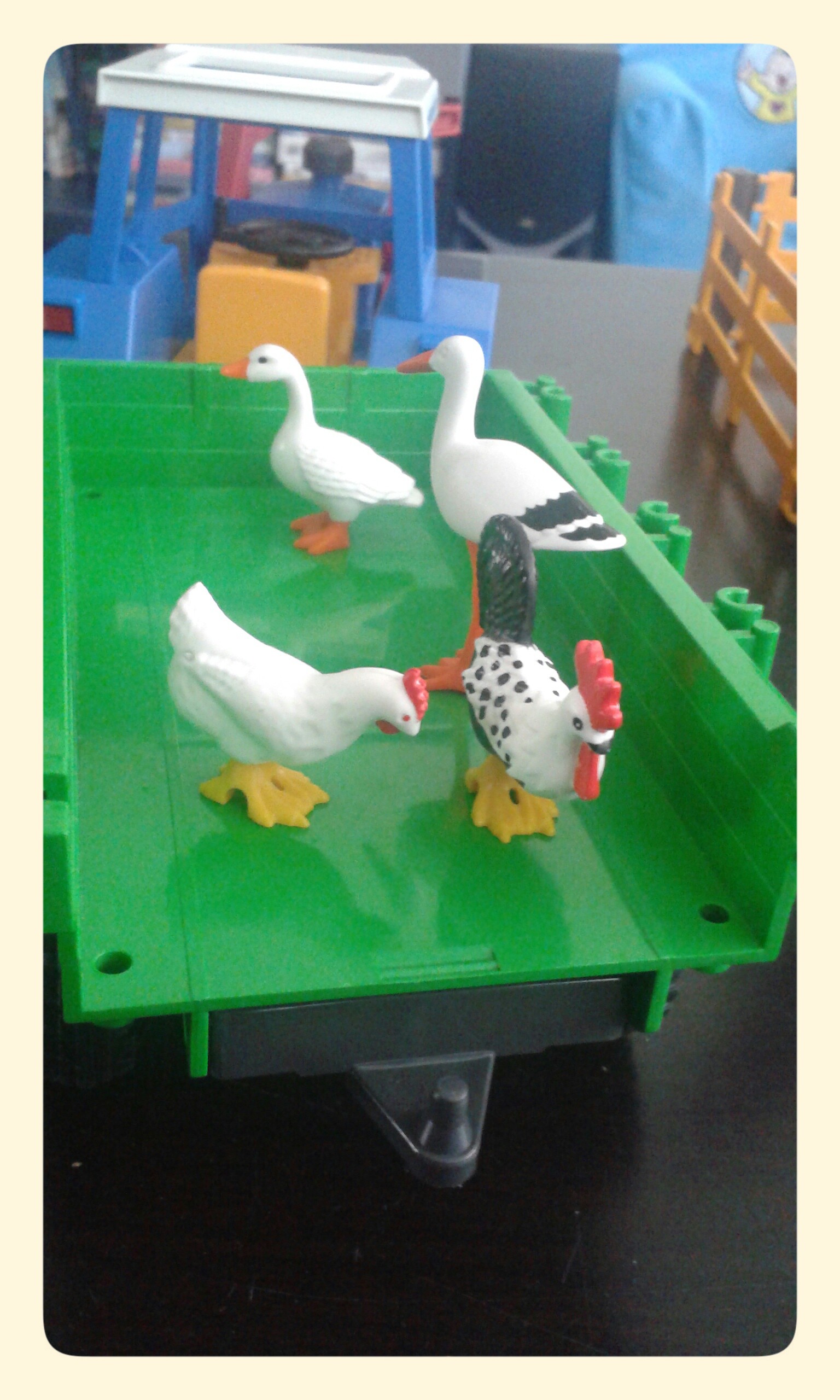 Bij het spelen met de playmobil wist ik heel trots aan Ilja te zeggen “Kijk! Dat is een kar die kan kippen, een kipkar!” Ik had ook eens iets ontdekt!