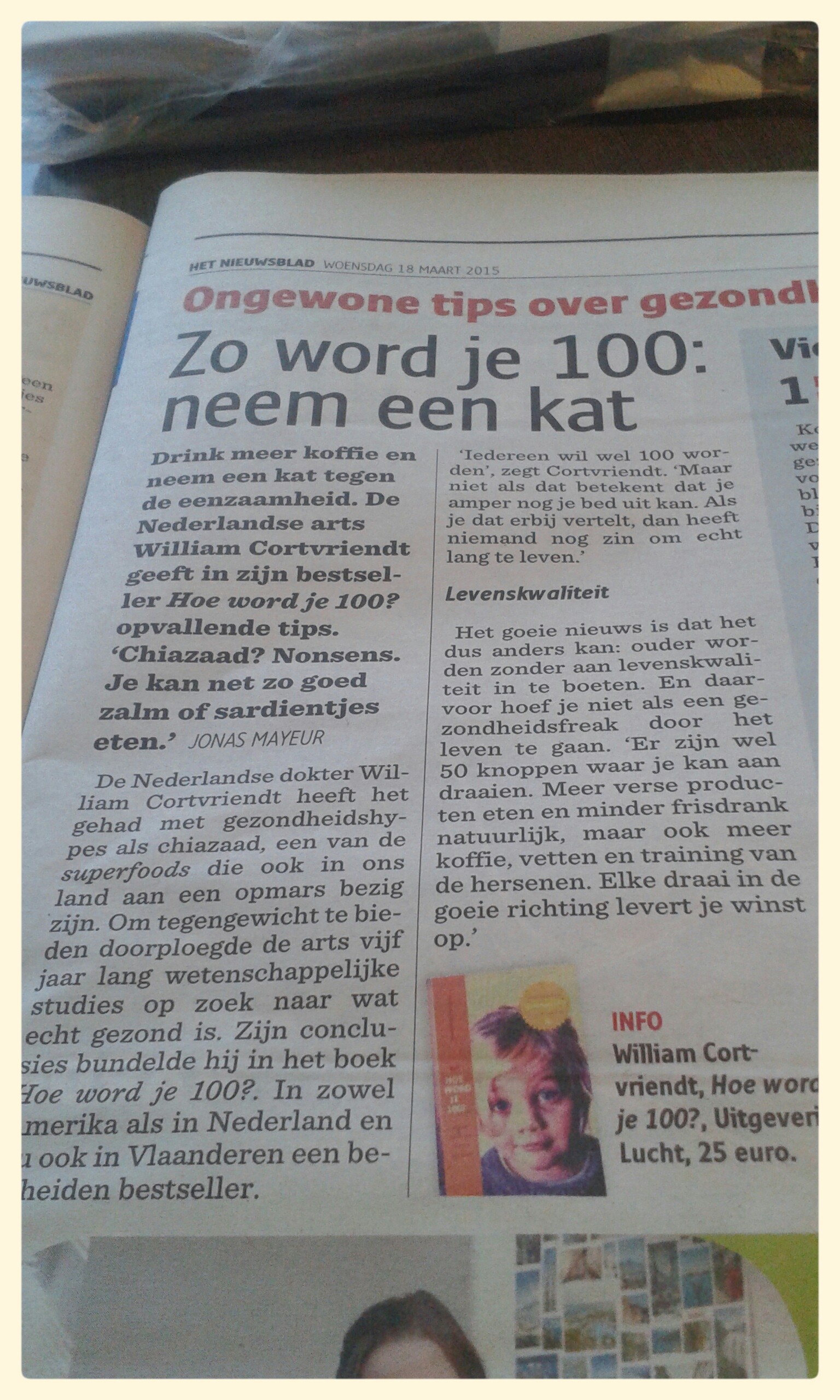 De krant gelezen en dit artikel in de gsm opgenomen. Ik kan me volledig vinden in deze stelling, katten zijn het perfecte gezelschap voor oudere mensen. Oude mensen hebben toch ook de neiging om te verwennen, en net dat vinden katten de max. Zelf ben ik enorm aan het twijfelen om weer een kat te nemen. Uiteraard niet met een baby op komst in de komende weken, maar misschien deze zomer wel? Of is het kittenseizoen dan voorbij? Misschien kan een bloglezer mij wel helpen aan een speciale kitten?