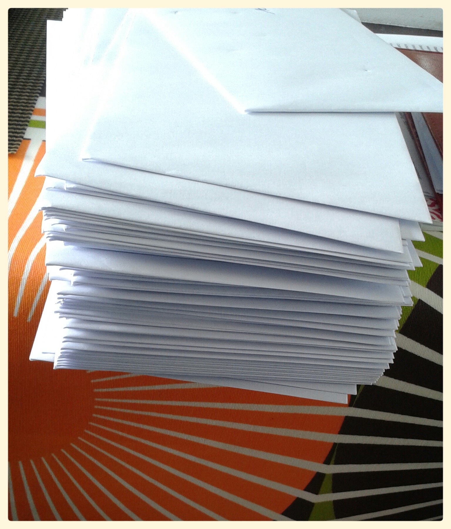Adressen geschooid bij veel mensen. Mijn adresboekje was totaal niet meer up-to-date. Zoveel mensen die verhuisd/gescheiden/nieuw samengesteld zijn in de voorbije jaren! (en zoveel nieuwe mensen leren kennen blijkbaar!) Mijn lief mocht niet helpen met het schrijven van de enveloppen. Ja, hij weet dat dat komt omdat ik vind dat hij een lelijk handschrift heeft. En neen, ik heb geen klachten gehad over die opmerking.