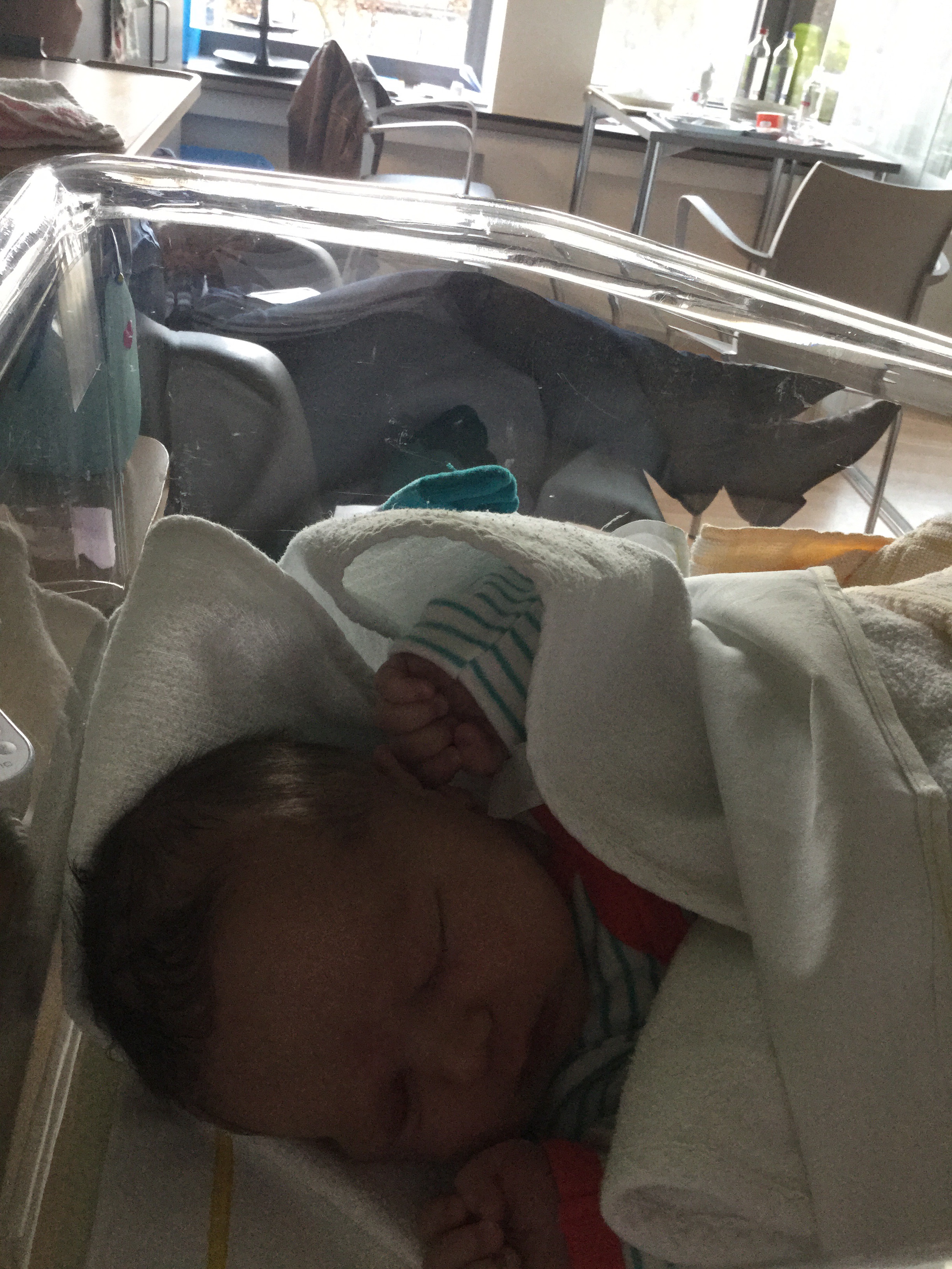 Hier ook een zoontje van 4,4 kg. (Ondertussen is hij 3,5 jaar.) Als mensen vragen of die bevalling wel lukte, zeg ik altijd dat zijn gewicht niet het probleem was, maar zijn hoofdomtrek (p100). Alhoewel, zelfs dat viel eigenlijk wel goed mee.