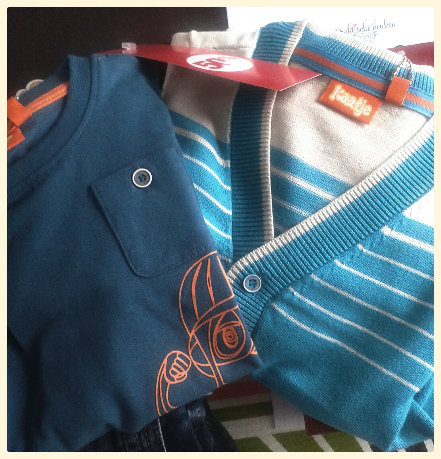 Binnenkort organiseren we een familiefeestje voor de geboorte. Niet echt een babyborrel, meer een familieborrel. Dat maakt het uitnodigen echt veel minder moeilijk. Je hoeft geen lijn te trekken van “wie nodig ik uit en wie valt uit de boot”, iedereen die op de één of de andere manier familie is aan Linus is uitgenodigd. Linus kreeg alvast een geweldig knappe outfit cadeau van onze overbuurvrouw, en voor mijn oudste zoon ging ik gisteren shoppen bij JBC. Het was een berekende gok, JBC is nog graag open op een feestdag. Het moest passen dat ze ook nog eens solden plus extra kortingen deden tijdens het hemelvaartweekend. Sinds enkele maanden laat ik hem kleren passen voordat ik ze koop. Best dat ik het deze keer ook deed, want de maat waarvan ik dacht dat hij ze droeg bleek te klein te zijn. Niettemin vond ik 4 stuks voor iets van een 40 euro, ik deed 62 euro profijt en Ilja staat alvast helemaal in het nieuw. Ik hoef er geen tekening bij te maken dat ik -de soldenfreak- weer helemaal in mijn nopjes was met al die korting.