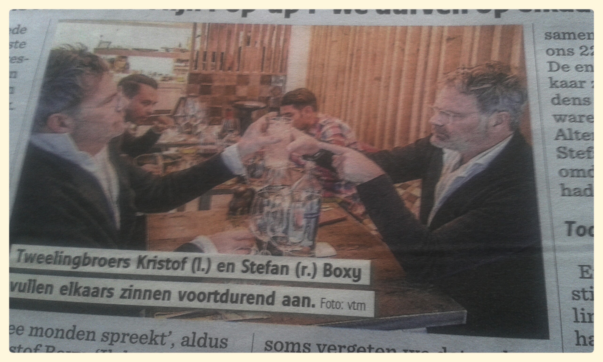 “De Boxy’s”. Alsof ze één persoon zijn die zich heeft opgesplitst. Symbiotische relaties, ze bestaan. Tweelingen die tot op het einde van hun dagen dezelfde kleren dragen….ook dat bestaat blijkbaar nog.