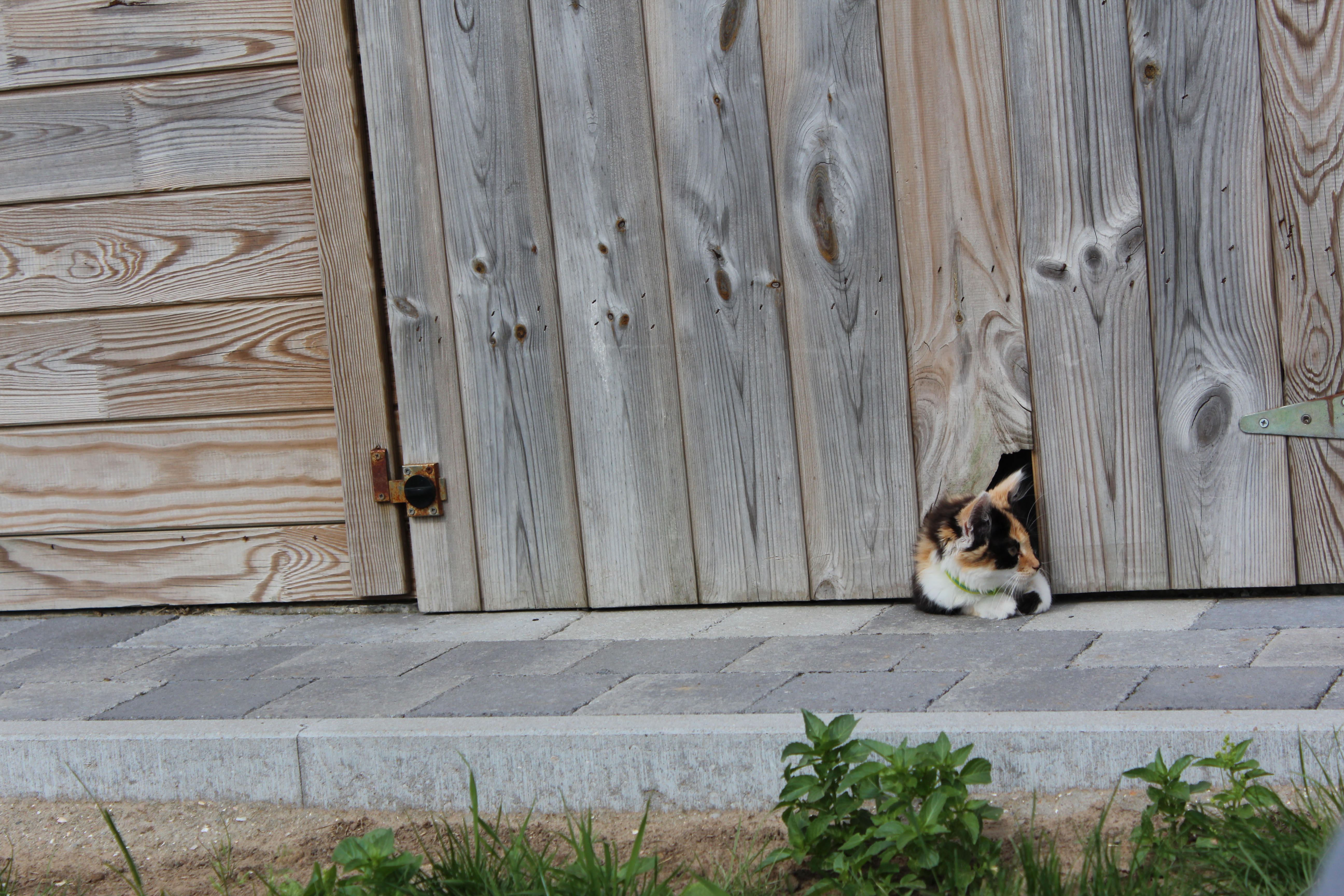 Schanulleke aanschouwt het van op een veilige afstand: haar tuinhuisdeurgat.