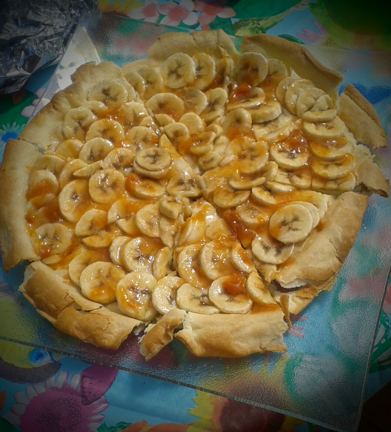 15u30: Als de gasten zijn aangekomen snijden we de bananentaart en de flantaart aan.
