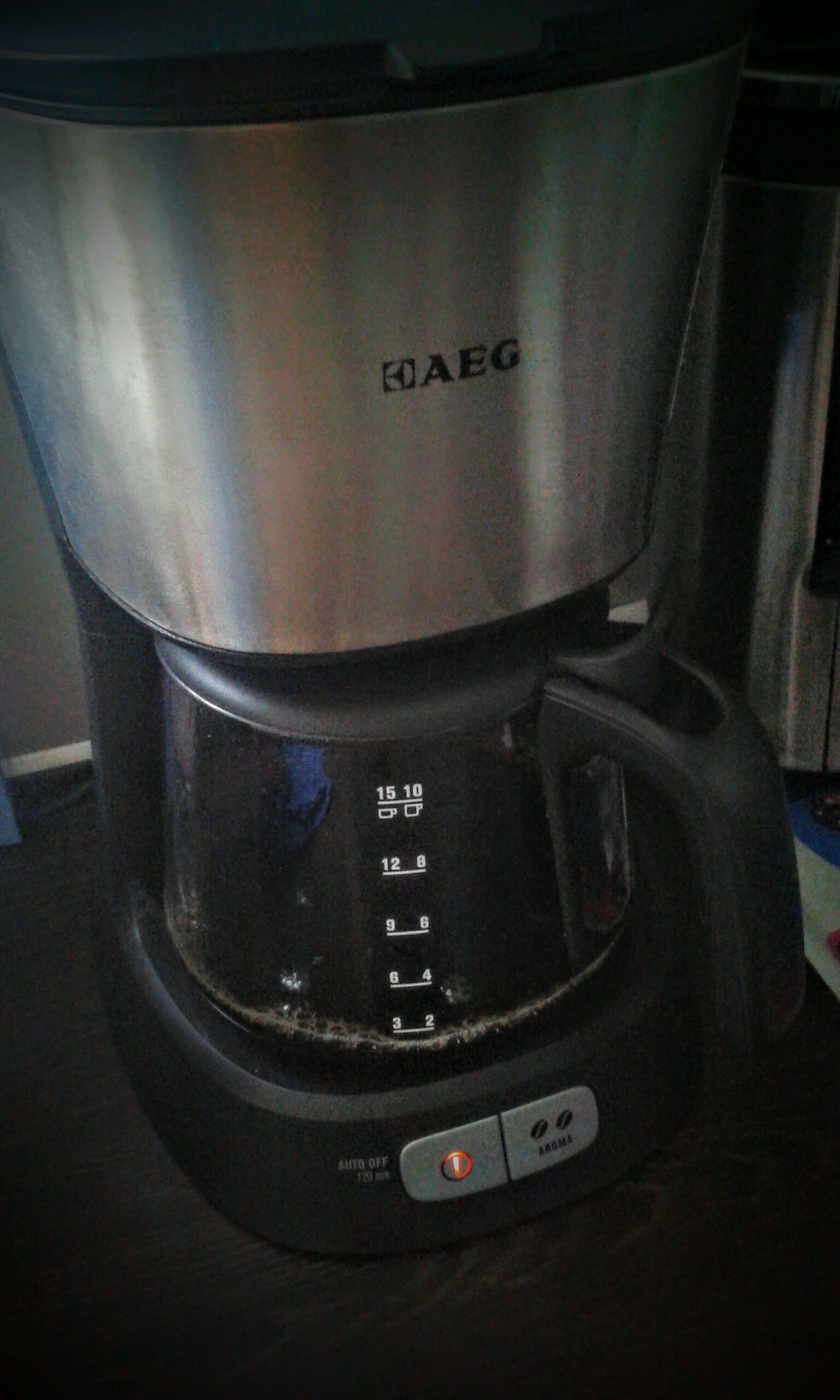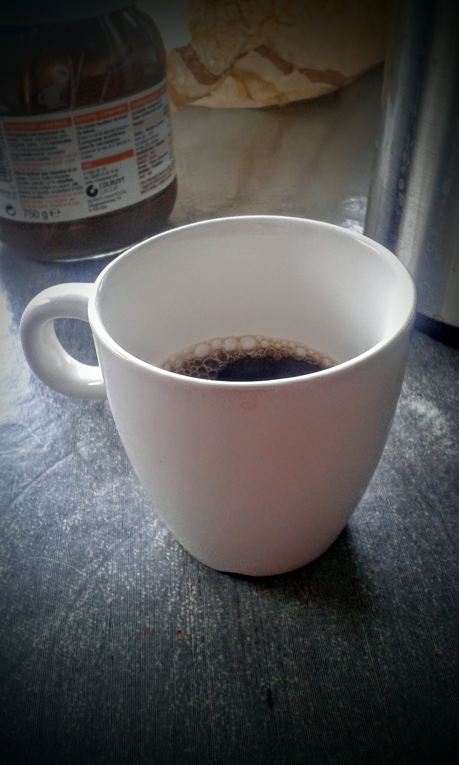 Twintig minuten later, als iedereen zijn boterham, zijn melk en zijn kattenbrokken heeft gekregen, is het eindelijk tijd voor mijn koffie….