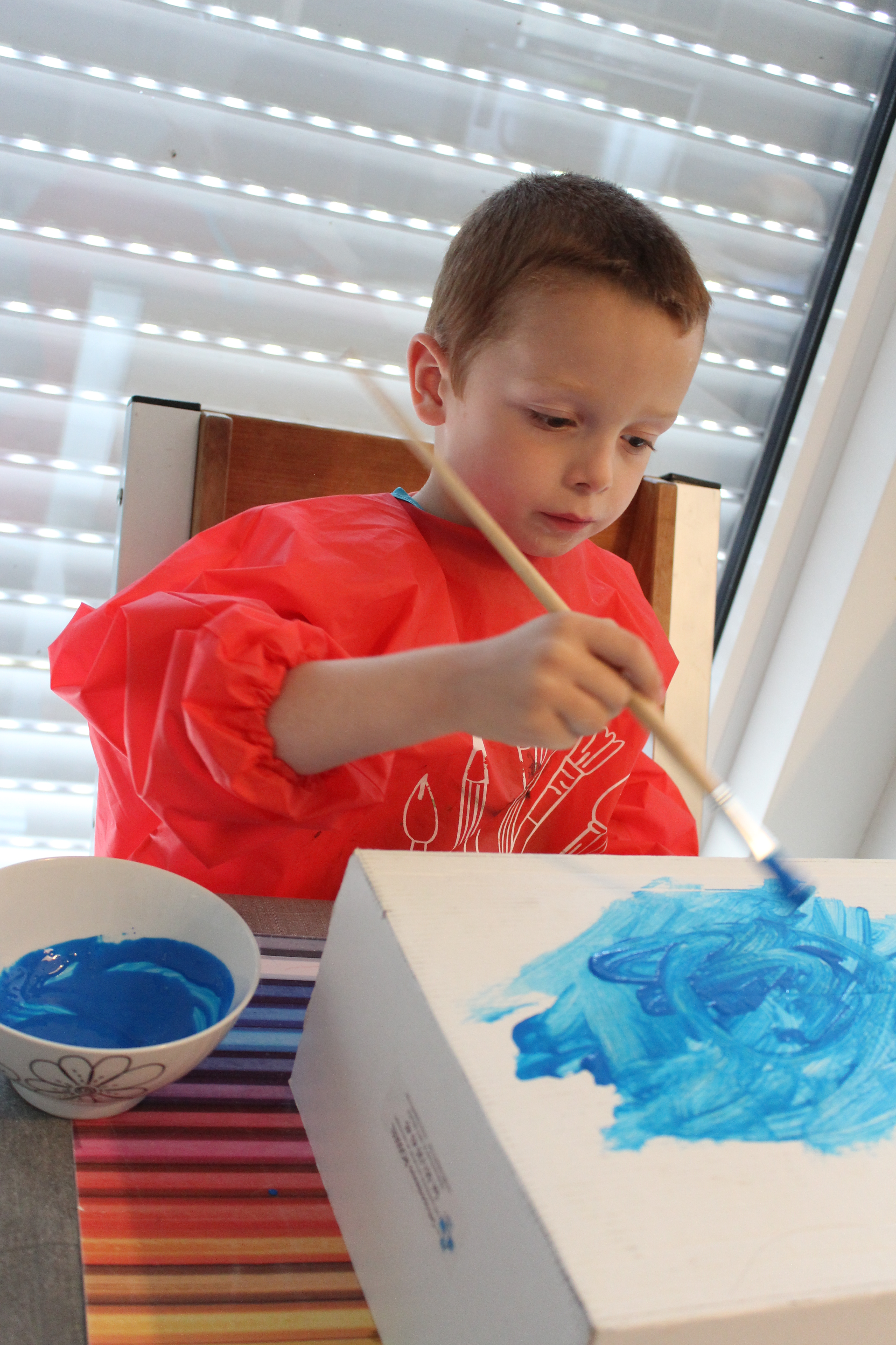 Linus stelt het goed in de crèche, hij kwam ook goedgezind thuis. Als ik hem even later op de mat laat spelen zie ik hem ineens dit doen: