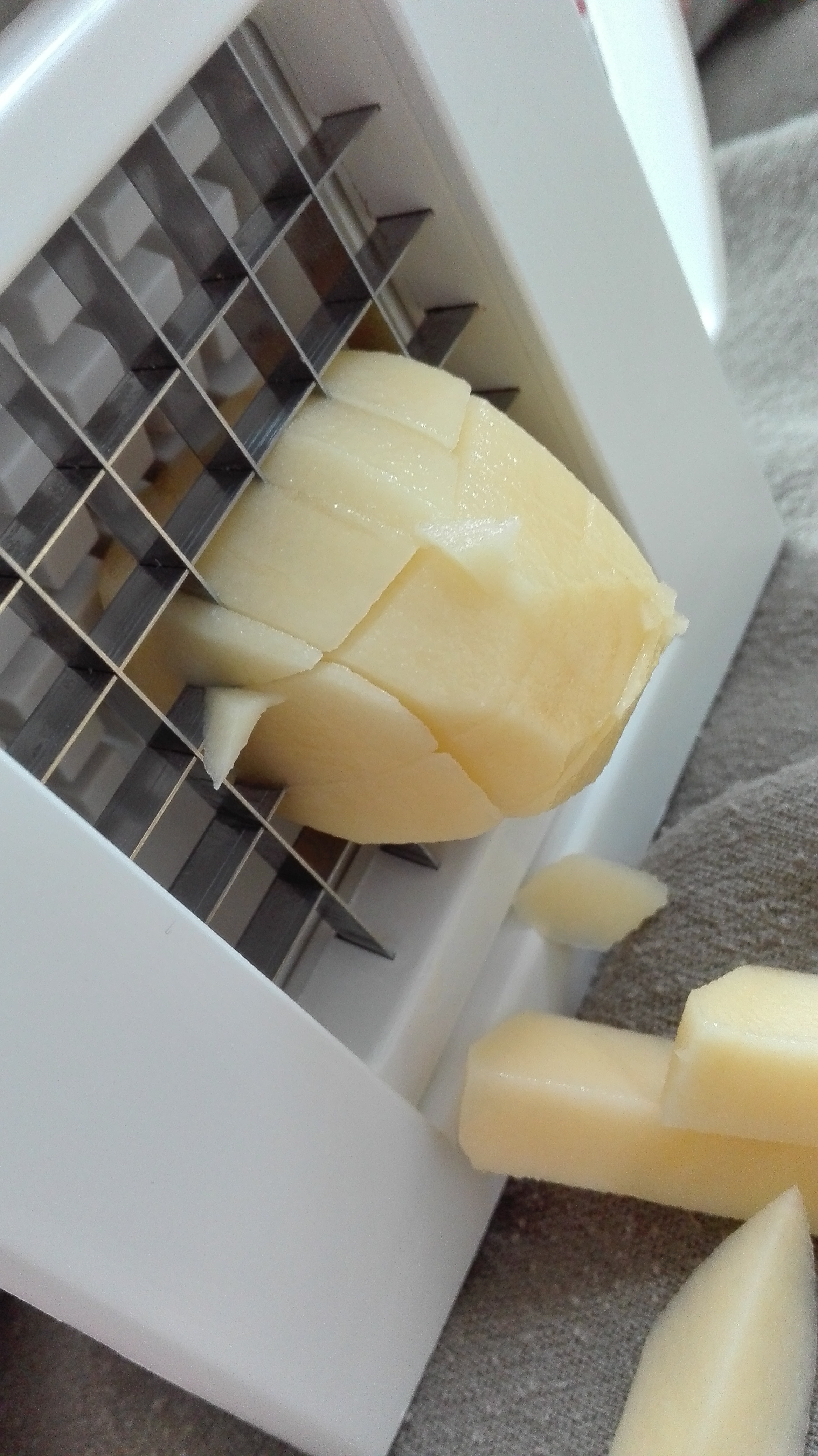 Verse frietjes heb ik dus ook nog nooit gemaakt (wel al gegeten); wij kopen altijd ovenfrietjes.