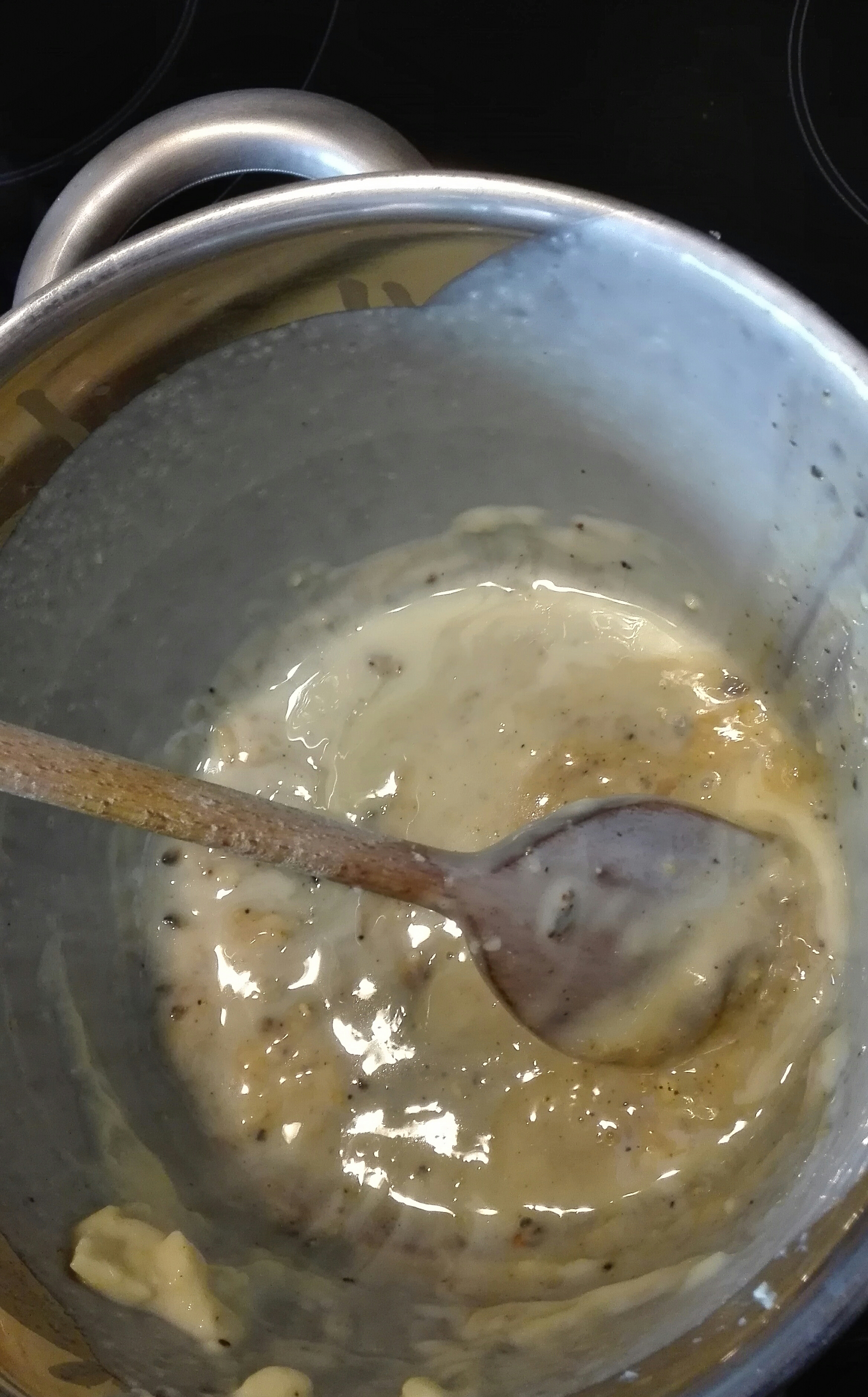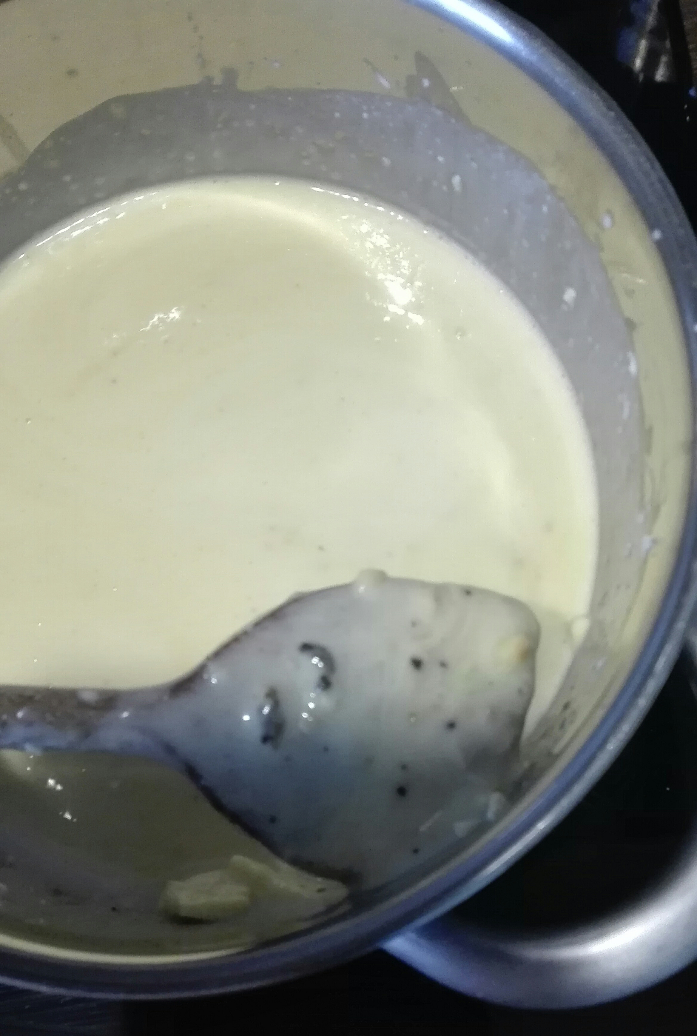Uiteraard ging het veel te goed.  Terwijl mijn room op het vuur staat en ik de perfect grof gehakte chocolade erin probeer te smelten gebeurt er iets met mijn geduld.  Het wordt op de proef gesteld.  Ik verhoog het vuur.  Draai me om en 5 minuten later zie ik het volgende in die kom: