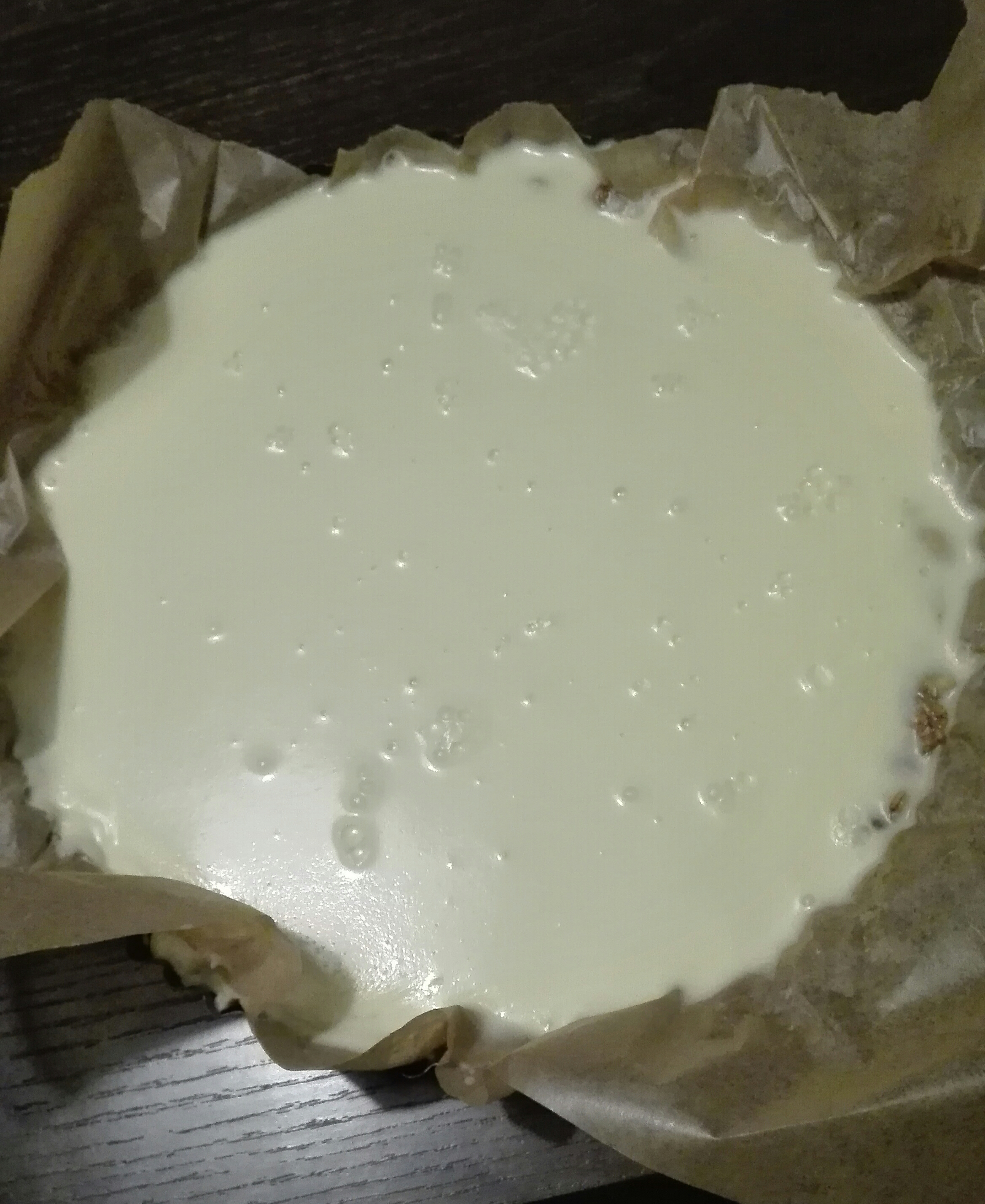 Zo hard de onderkant was, zo zompig was de bovenkant.  Eén grote zompige witte chocolademassa.  Ik moest bijna lepeltjes uitdelen omdat ze niet eetbaar was met een vork!