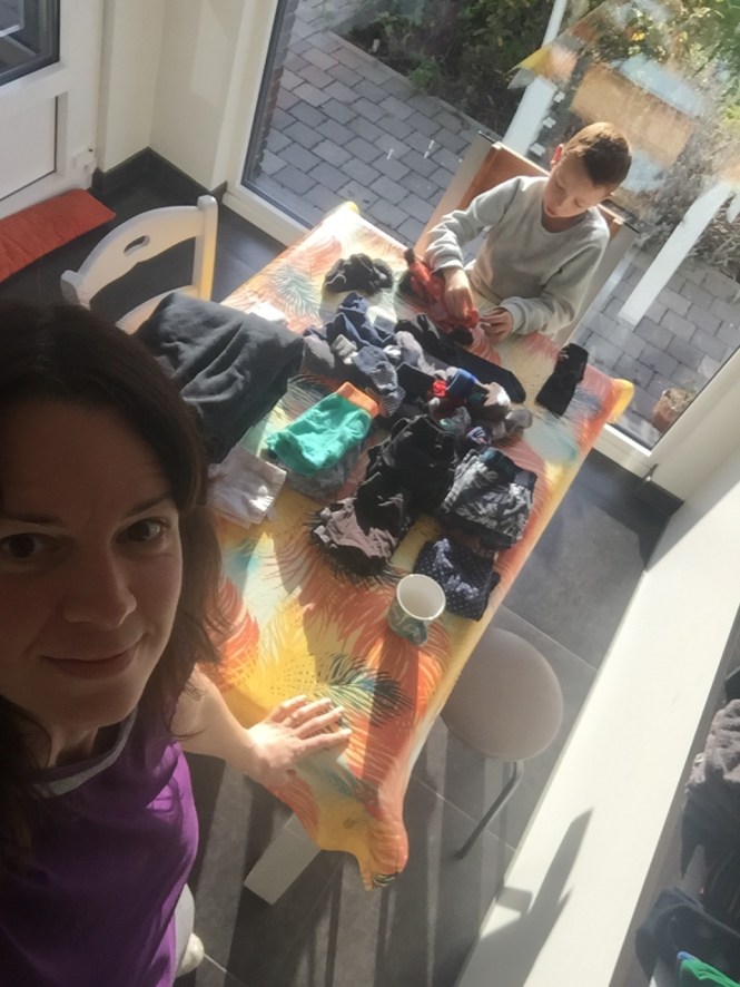 2018:  Hmja.  Ik kan het wel heel goed loslaten.  Ik dreef het aantal uren poetshulp zelfs nog wat op het laatste half jaar.  Zo krijg ik wekelijks iemand die drie uren komt poetsen in plaats van 2-wekelijks voor vier uren.  Daardoor heb ik meer het gevoel dat ik de dingen onder controle kan houden.  Uiteraard moet ik het wederom met minder stellen dan, maar het is het mij meer dan waard.  Tegelijk schakel ik ook veel meer de kinderen (ondertussen 3,5 en 7,5 jaar) in: ze vullen en legen zelfstandig de vaatwasser, dekken de tafel als ik het vraag of helpen poetsen als de poetshulp in verlof is.  Ilja helpt was plooien en Linus stopt alles in de juiste wasmand.