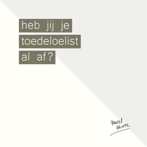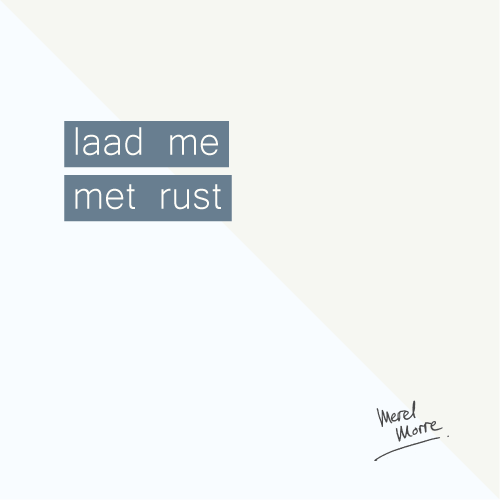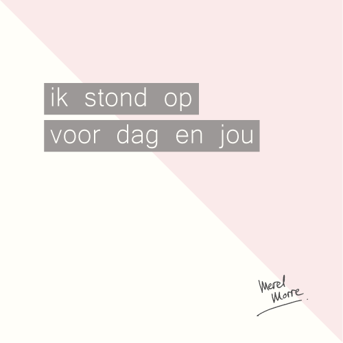 Had ik het ècht nog nooit over Merel Morre? Een quick search in mijn blogberichten bracht geen match op dus blijkbaar niet. Vreemd, deze dame kan schrijven! Voor wie haar niet kent: Merel boetseert met woorden: “…want van alle kleisoorten vind ik woorden en zinnen het allermooiste materiaal.” Korte, dubbelzinnige tekstjes waarbij spontaan een glimlach rond je mondhoeken trekt. Om er ééntje te noemen, helemaal van toepassing op mezelf: