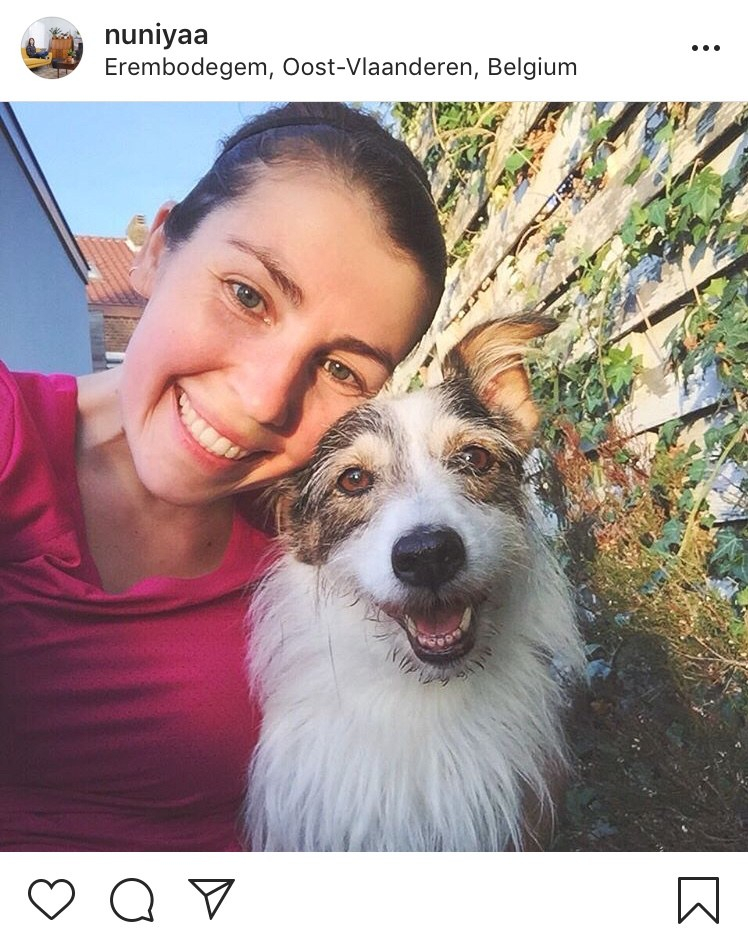 Sarah zorgt altijd voor de zon bij het scrollen door Instagram. Haar foto’s zijn immer vrolijk. Ze toont regelmatig haar hond Mica die “my favorite instadog” gekroond werd want….ze lacht. Echt, Mica is de max. Sarah houdt van lopen, vintage interieur, vegetarisch eten, een taartje hier en daar. Ze heeft sinds kort ook een webshop waarop vintage meubelen en decoratie wordt verkocht: nuniyasvintagehome.