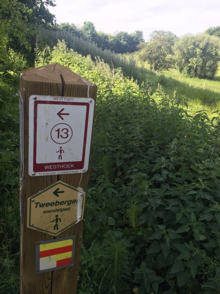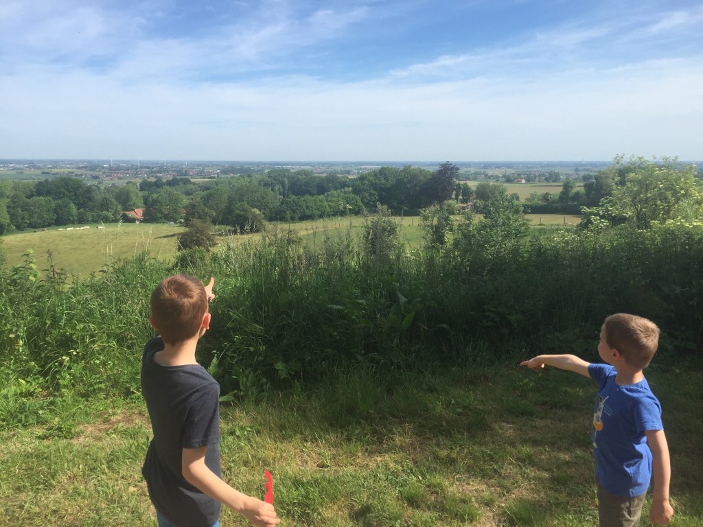 Vorige week trokken we naar de Rodeberg voor een wandeling van zo’n 4 km. Door de hoogtes en laagtes in het gebied deden we er al vlug twee uur over. De beentjes van Linus mogen dan nog maar 4 jaar oud zijn, hij weet er anders wel stevig de pas in te houden. Vanmorgen kozen we wederom voor Heuvelland, deze keer Het Tweebergenpad. De aangegeven 7,2km leek ons wel wat wild met de kinderen maar we besloten het erop te wagen. Thuis zitten ze elkaar anders toch maar in de haren.