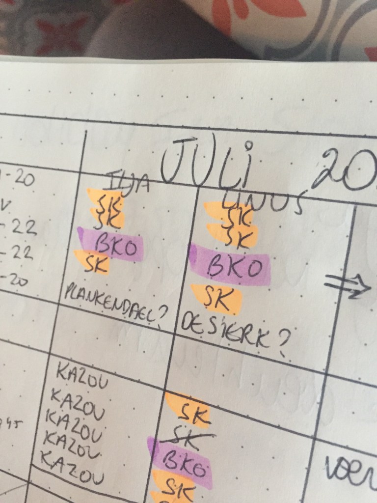 Gekwijld: soms kan ik echt kwijlen terwijl ik online aan het shoppen ben. Specifiek in de rayon van de bullet journals kan ik langdurig twijfelen over het kleur van de kaft. De vorm en grootte blijft altijd hetzelfde maar deze keer koos ik voor oranje. Ik kan meer en meer begrijpen waarom oranje de lievelingskleur is van mijn echtgenoot. Het past ook bij de periode waarin ik hem ga opstarten: juli en augustus.