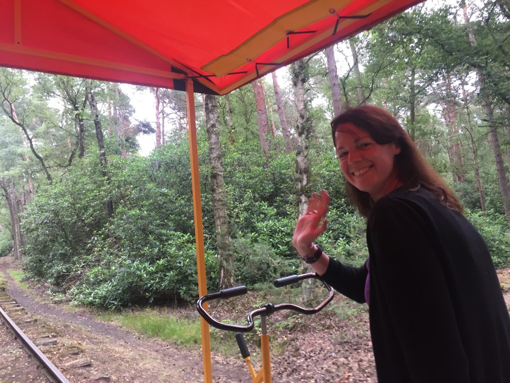 Vandaag gingen we spoorfietsen in Kapellen. Mijn stoutbeen doet er nog altijd pijn van.