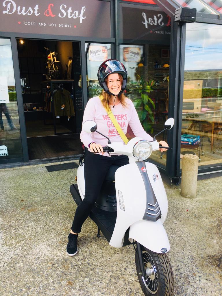 Niettemin is het vandaag een geweldige dag. De hittegolf is voorbij, het is mogelijk om weer buiten te komen zonder dat je compleet in de vlammen opgaat. De kinderen zijn voor de laatste keer naar het sportkamp en de verzekering en nummerplaat voor mijn scooter zijn in orde. Ik pikte de beauty vanmorgen op en ik kan maar één dingen zeggen: “MACHTIG!!!”. Als 16-jarige reed ik met een scooter dus ik was er weer vlug mee weg. Het lichtjes zwevende gevoel van over de baan te zoeven, de wind in mijn gezicht, echt, zo’n gevoel van vrijheid heb ik al jaren niet meer gehad. Het was ook meteen duidelijk dat dit helemaal anders is dan je met de wagen ergens verplaatsen. Alleen al het feit dat je enkel je eigen gedachten hoort. In de auto zet ik nooit de radio af omdat ik het gewoon ben om met muziek te rijden maar het is best wel relaxerend om eens alleen maar naar je eigen hoofd te luisteren. Met de bromfiets ben ik ook mossel noch vis. Ik ben geen fietser, ik ben geen automobilist. Toch ben ik goed gezien in het verkeer.