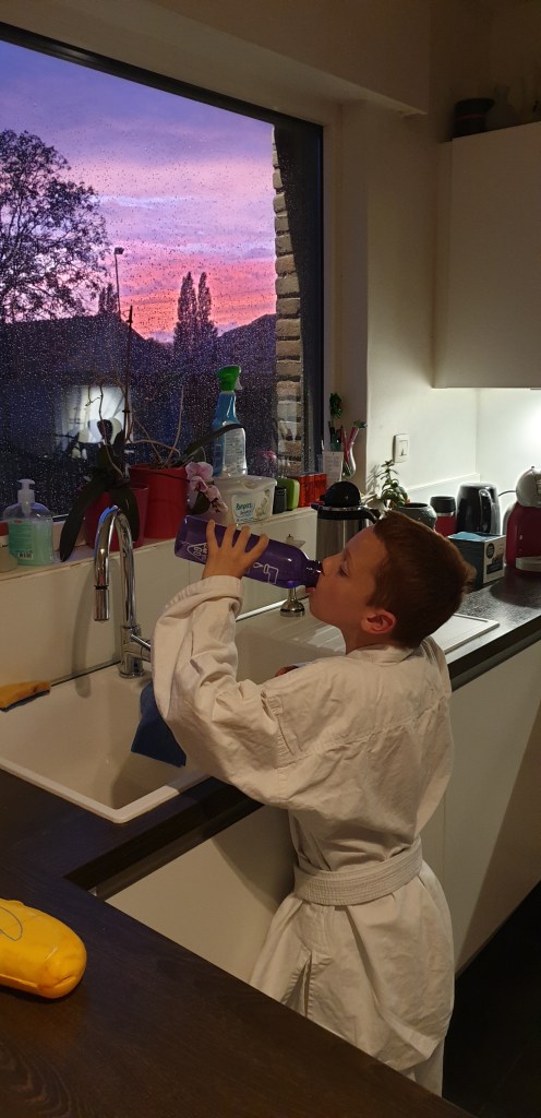 Vandaag is een recupdag. Als ik de kinderen heb afgezet op school ga ik terug naar huis en regel wat praktische zaken. Ik bestel om 10u tickets voor Elbow en rij daarna met een grote smile op mijn gezicht naar Roeselare waar ik enkele boodschappen wil doen voor mijn vrijwilligerswerk bij Gezinsbond. De regen vliegt met bakken uit de lucht, mijn regenjasje doet goed zijn werk. Over de middag lunch ik met Josefien bij POP in het centrum en daarna stap ik nog eens vlug de winkelstraat in bij mijn favoriete winkel JUTTU. Om 16u pik ik mijn zonen op aan de schoolpoort en gaan we over tot de routine van “onderhandelen over huiswerk maken”, het andere stinkgatje in bad steken en maaltijden voorbereiden voor die avond en de dag erna. Ondertussen doet de wasmachine enkele rondjes want diezelfde avond nog ledigen we ons volledige washok en proberen we alle toestellen in onze garage te tetrissen. Ik poets de vloer en de ramen in het washok terwijl het leeg is. De echtgenoot pakt de keuken aan en stopt de kinderen in bed. Rond 20u30 ploffen we in de zetel en streamen we Studio Tarara vanop de VTM-app. Mijn handen ruiken naar javel.