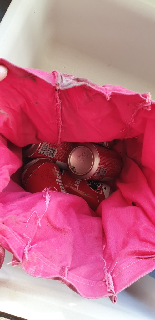 - Waarom de moeite doen om dat daar te gaan vastknopen, het is geen plek waar wandelaars voorbijkomen omdat het een “drukke” (relatief in De Westhoek, mo gow) invalsweg is richting stad. Dus het lijkt me onlogisch dat drinkende wandelaars zich geen raad meer wisten met de blikken en dan maar beslisten om ze ostentatief in het zicht te gaan hangen.