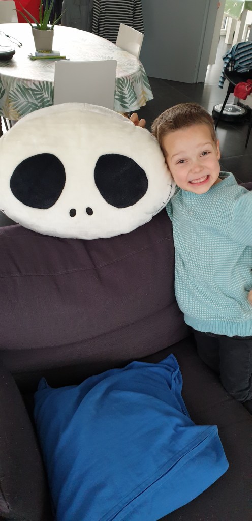 Met dit Jack The Pumpkin King kussen heb ik mijn jongste zoon dan weer dolgelukkig gemaakt. Ik kreeg het ooit cadeau van mijn broer, een wasmachinebeurt later bracht het mijn kleuter zoveel plezier, hij sleept het al de hele week met zich mee.