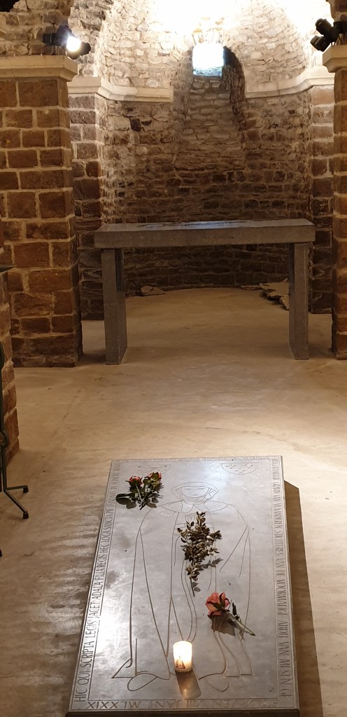 We startten ter hoogte van het stadhuis en stapten zo verder naar de kerk waar een crypte uit de 11e eeuw ligt onder het kerkkoor.