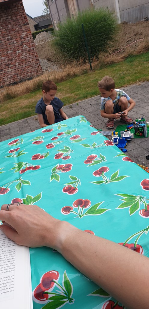 De middag rekt zich loom uit. Na het poetsen beland ik in de zetel en wordt er duchtig verder gespeeld. De zon wordt buiten opgesloten.