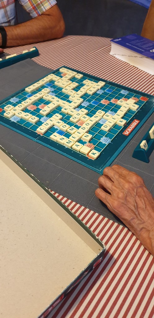 Alvorens ik naar de kapper ga bezoek ik mijn ouders die verwikkeld zijn in een scrabblestrijd. Ons moeder wint het spel. Fyi: “Exomen” is blijkbaar een onderdeel van onze genen en dus niet alleen een West-Vlaams examen.