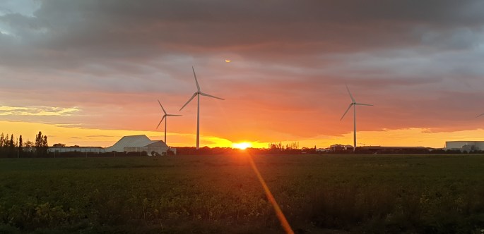 Aan de kant met de rammelbak. Ik parkeerde langs de weg toen de zonsondergang me dat vroeg. We krijgen niet veel overweldigende zonsondergangen dus profiteer ik er van als er mij één gegeven wordt.