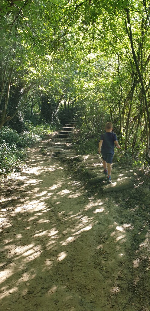 Terwijl Ilja in de Chiro was en de husbando aan het werk stapten we de kortste route. Voor mij was het ondertussen al de vijfde keer. Grappig dat Linus zich telkens gebeurtenissen herinnert van op deze wandeling “en hier hebben we eens op een bankje gezeten en dan heb ik eens een pannenkoek met choco gegeten”. Zondag waren alle bankjes weliswaar bezet. Ik zou beter stoppen met reclame maken voor deze geweldige tocht! Ik wed dat hij de volgende keer zegt “en hier kwam een hondje dat mijn wafel wou pakken” want zijn tussendoortje stond hij bijna af aan een ankerende Teckel.