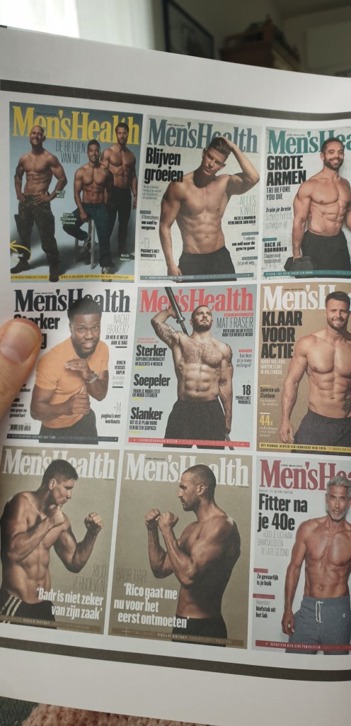 Terwijl ik door de Men’s Health van mijn echtgenoot bladerde besefte ik dat het niet alleen vrouwen zijn die soms twijfelen aan hun uiterlijk. Als ik de mannen in het magazine van nader bekijk (het was niet lastig) vraag ik me af: je moet toch enorm veel tijd hebben om te sporten om er zo uit te zien? Zijn dat mannen die fulltime werken en een gezin thuis hebben, nieuwe omheiningen plaatsen tijdens het weekend nadat ze soep kookten voor hun kroost? Mijn lief gaat gemiddeld 2 keer in de week fitnessen, dat vraagt al heel wat planning en organisatie. Hij ziet er knap uit en dat zelfvertrouwen straalt hij uit, maar hij ziet er niet zo uit: