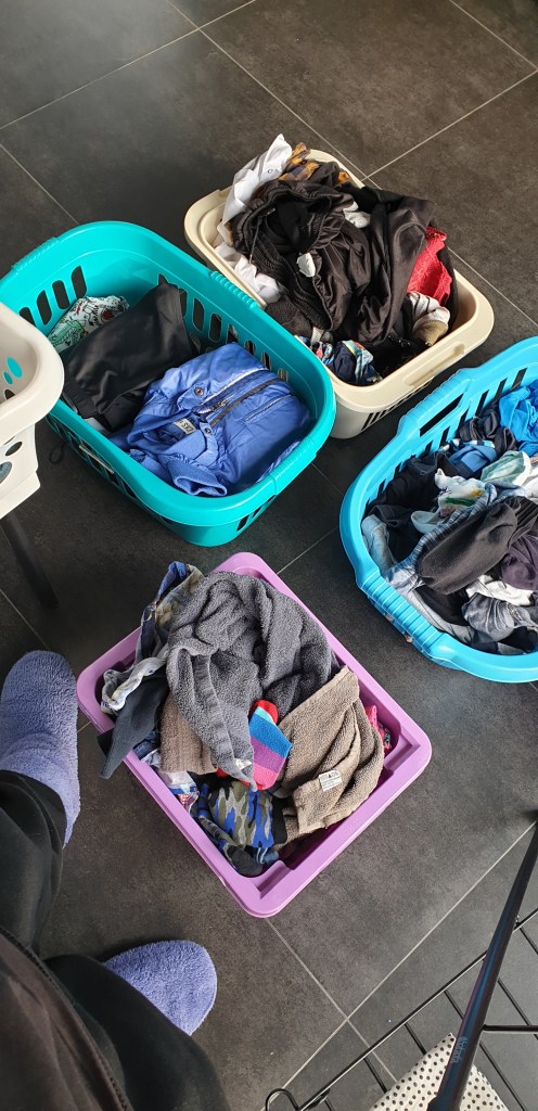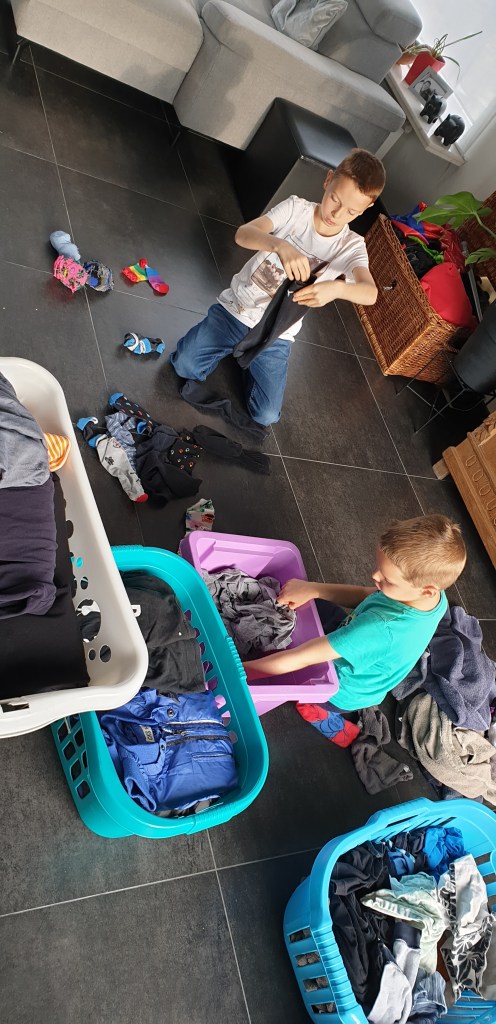 Even genadeloos zijn de hopen was in mijn washok. Ik start een wasmarathon en steek de jongens in het werk om me te helpen.
