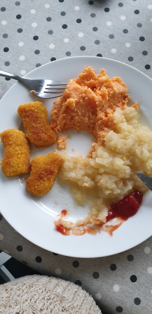 ’s Avonds eten we een weinig instagramwaardige maaltijd die wel tot de laatste korrel wordt opgesmoefeld. Puree van zoete aardappel, verse appelmoes en veggie nuggets met ketchup van den Aldi. Een hipster zal ik nooit worden. Zoveel is zeker. Maar mijn plantjes staan wel schoon hé toch?