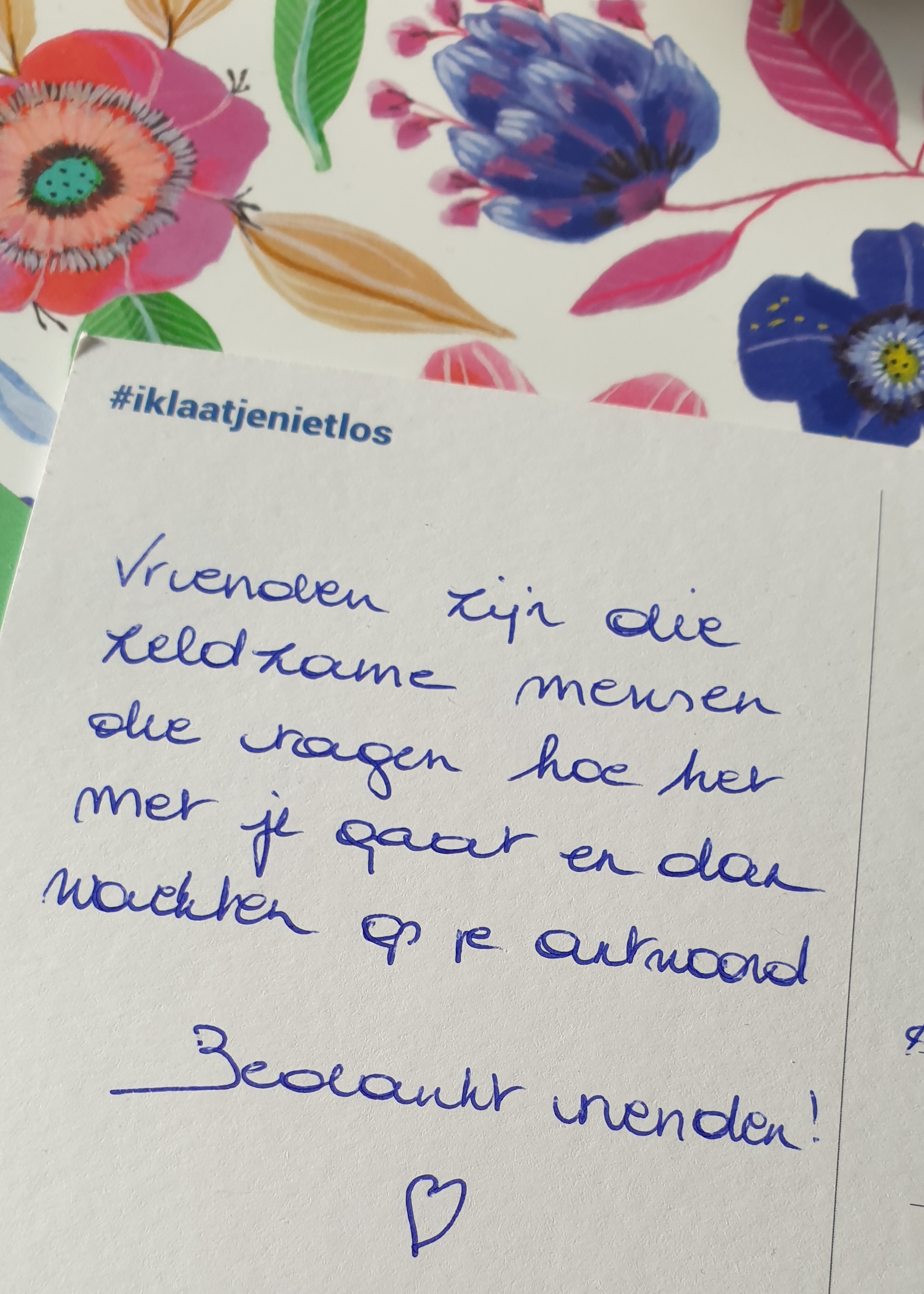 Na de laatste werkdag van de week vond ik een lief kaartje in de brievenbus. Mijn gemoed zat wat in mijn keelgat en ik moet zeggen dat dit mooie gebaar veel heeft goedgemaakt.
