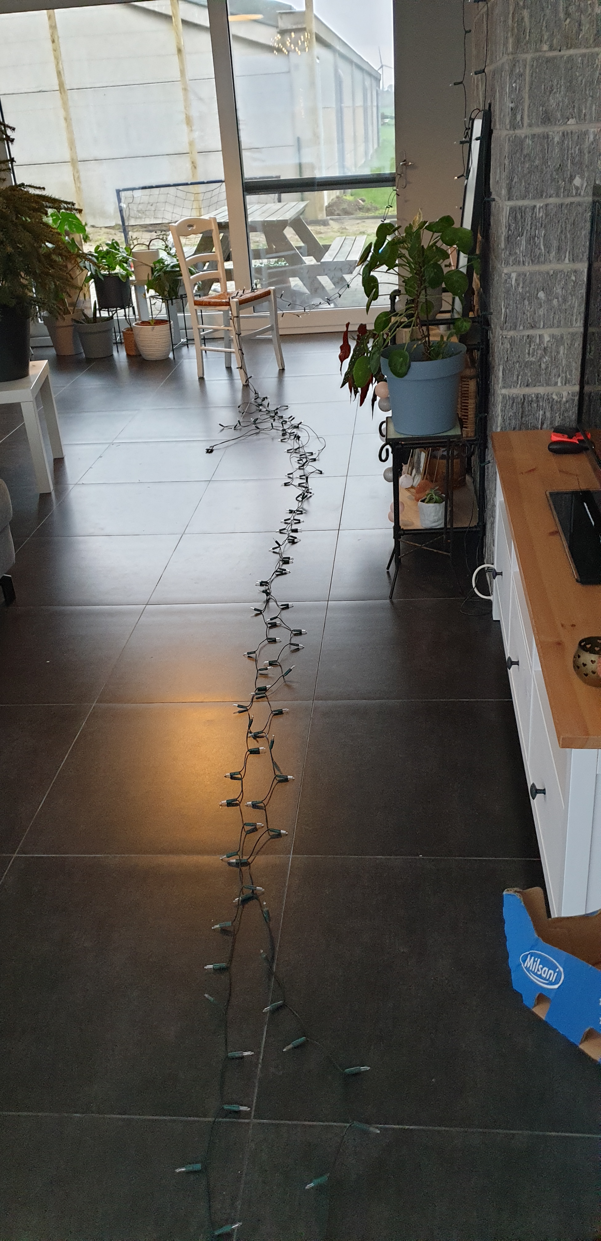 Ik kocht enkelvoudige lichtsnoeren, die raken zo snel niet in de knoop. Ik heb nooit het nut gesnapt van die dubbele snoeren; degene die dat heeft uitgevonden deed dat toch om mensen te pesten nee?!
