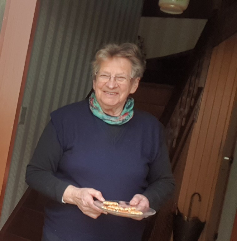 Tijdens het weekend ging ik naar mijn meme om een drempelpraatje te houden. Ze wou zo graag dat ik binnenkwam maar dat doe ik niet. Ze stond erop dat ik toch minstens één van haar wafeltjes at en even later stond ik te kruimelen op haar oprit. De gesprekjes zijn altijd kort en ze begrijpt me niet zo goed met mijn mondmasker maar ik neem liever geen risico.