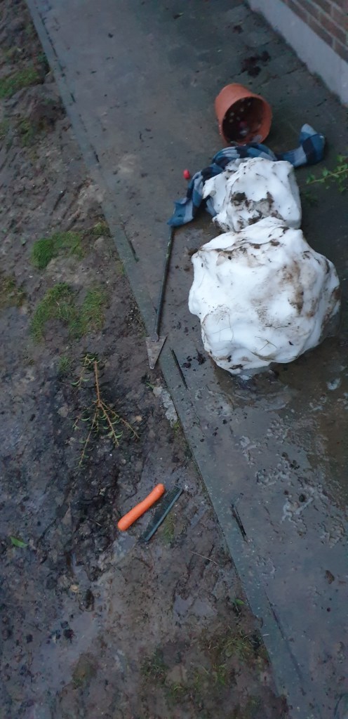 1. Graag nog verduidelijking dat we in de tuin aan het werken zijn alvorens de mensen denken dat er nog een loopgraaf van 14-18 door onze tuin loopt (wat waarschijnlijk het geval is maar dan onder de grond) … dank van uw liefhebbende echtgenoot, doe zo verder 😀
