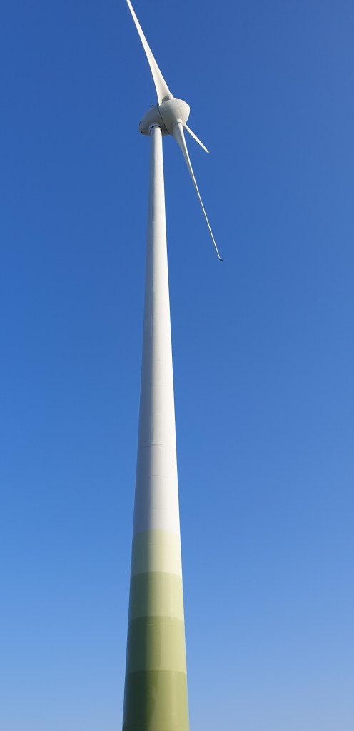 Je passeert op die wandeling aan de voet van twee windmolens. Ik heb er zelf twee in het uitzicht van mijn tuin dus ik vond het wel imposant om eens één van zo dichtbij te zien. Er was wel enorm veel slagschaduw, ik vraag me af of dat niet irritant is als je daar vlakbij woont.