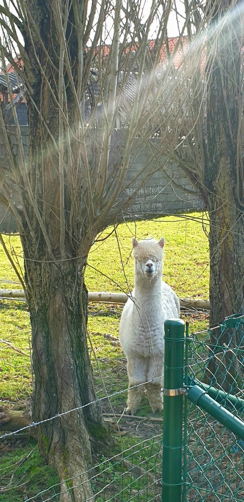 Echt, als ik alpaca’s zie ben ik instant goed gezind. Die nonchalante blik, die frou-frou, die wijduitstaande poten. Dit blijven toch mijn favoriete dieren en Delphine heeft ze gewoon als buren. Ik zou er elke dag bij gaan zitten moest ik daar wonen! (Ze deden me ook terugdenken aan Albatros waar alpaca Johny een glansrol in speelt).
