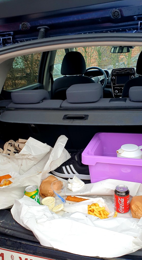 Het concept kofferkoffie kreeg direct ook een upgrade. Als je je honger wil stillen in Ellezelles ga dan naar Le temps d’une frite op het marktplein, je zal het je niet beklagen, ik mijmer al de hele week na over de luchtige frietjes die me de regen deden vergeten. (“We gaan dit niet aan de kinderen vertellen hé?”)
