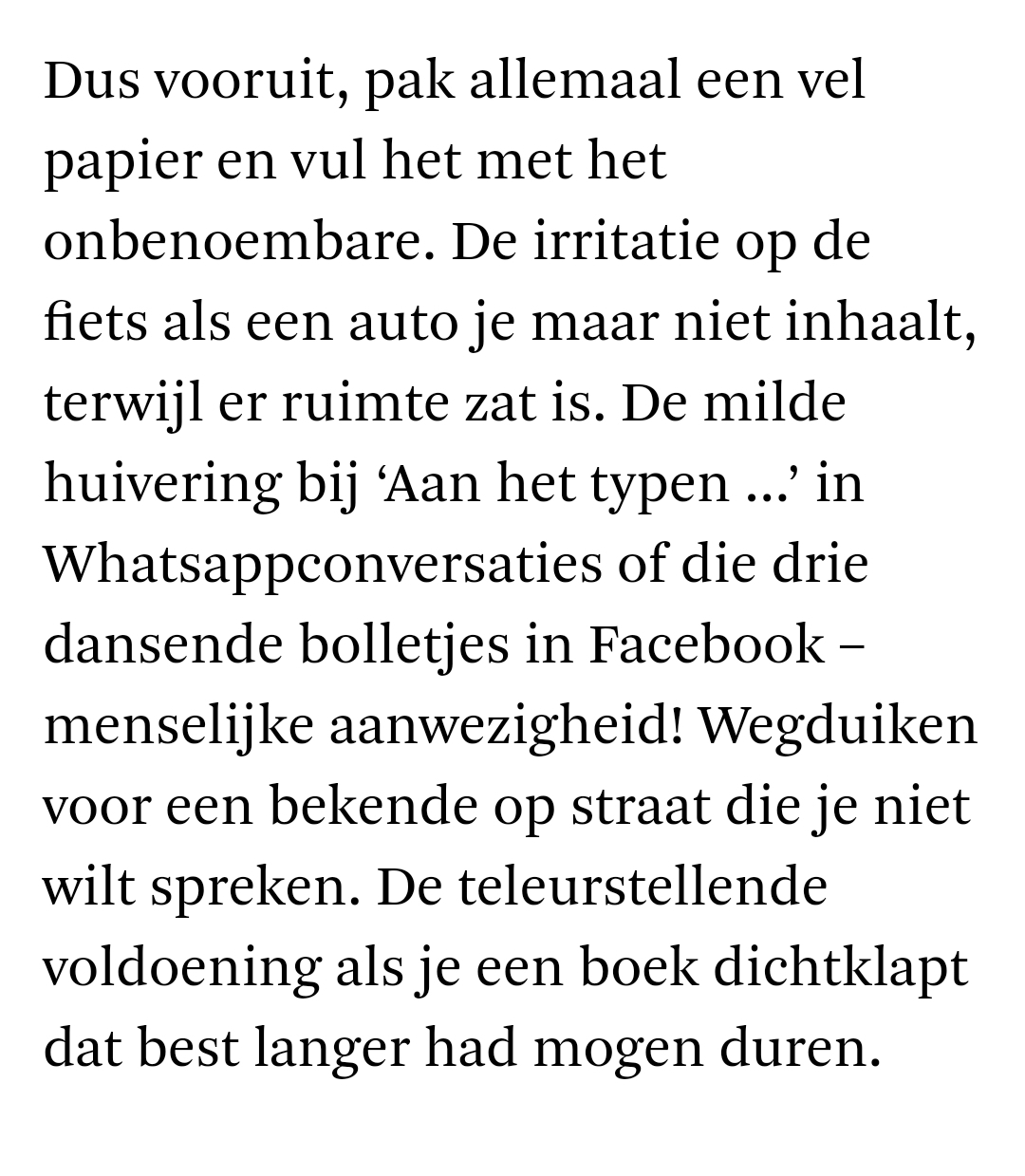 En ondertussen zoek ik naarstig verder naar een beschrijvend woord voor het “Aan het typen…” gevoel. “Woordjeswachten”? “Pijnpuntjes” als het een moeilijk gesprek is? Ik moet dringend mijn taal verrijken zeg!