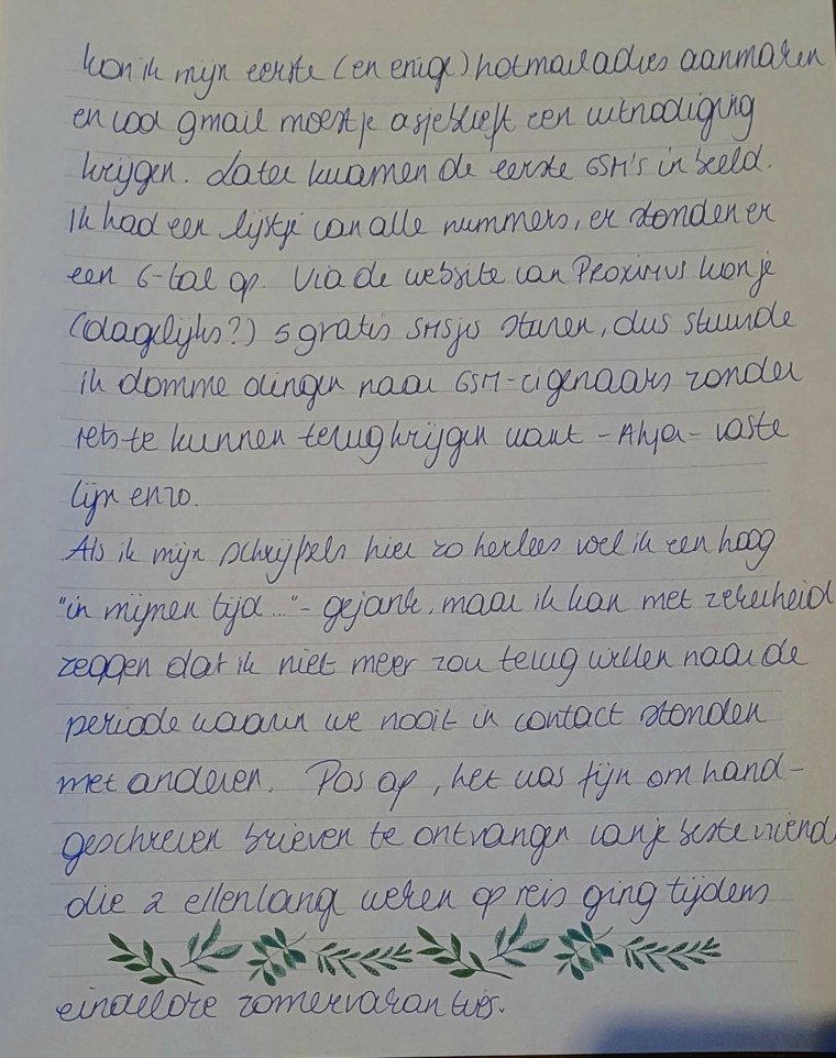 Ik schrijf nog regelmatig met de hand en vind dat wel fijn. Vroeger kon ik er echt van genieten om met een vulpen te schrijven, geen idee waarom ik dat nu eigenlijk niet meer doe. Heerlijke trip down memory lane, dat begin van het internet en een eerste e-mailadres 🙂