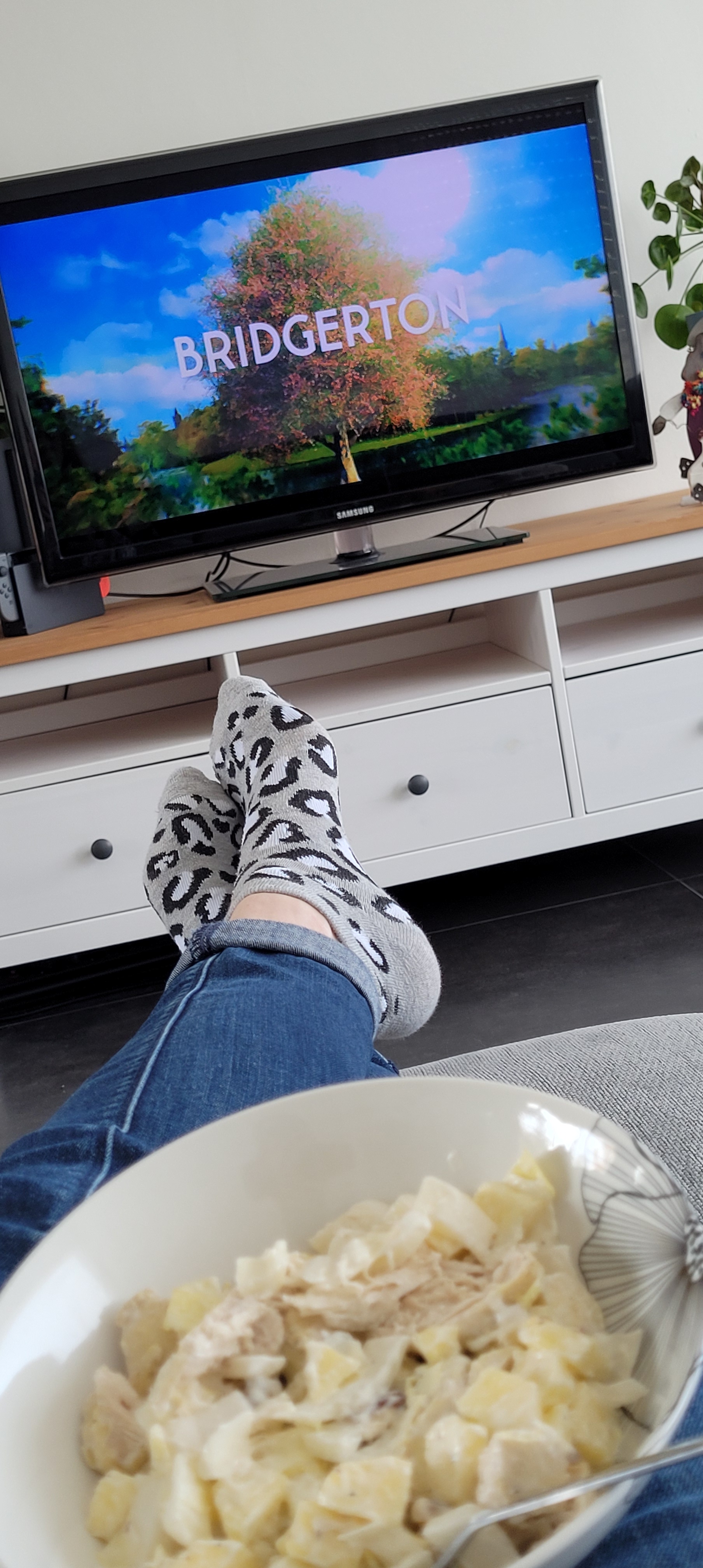 • Seizoen 2 van Bridgerton (Netflix): Het komt traag op gang en het is volledig anders dan seizoen 1. Ik kijk wel maar meer met een half oog zo.