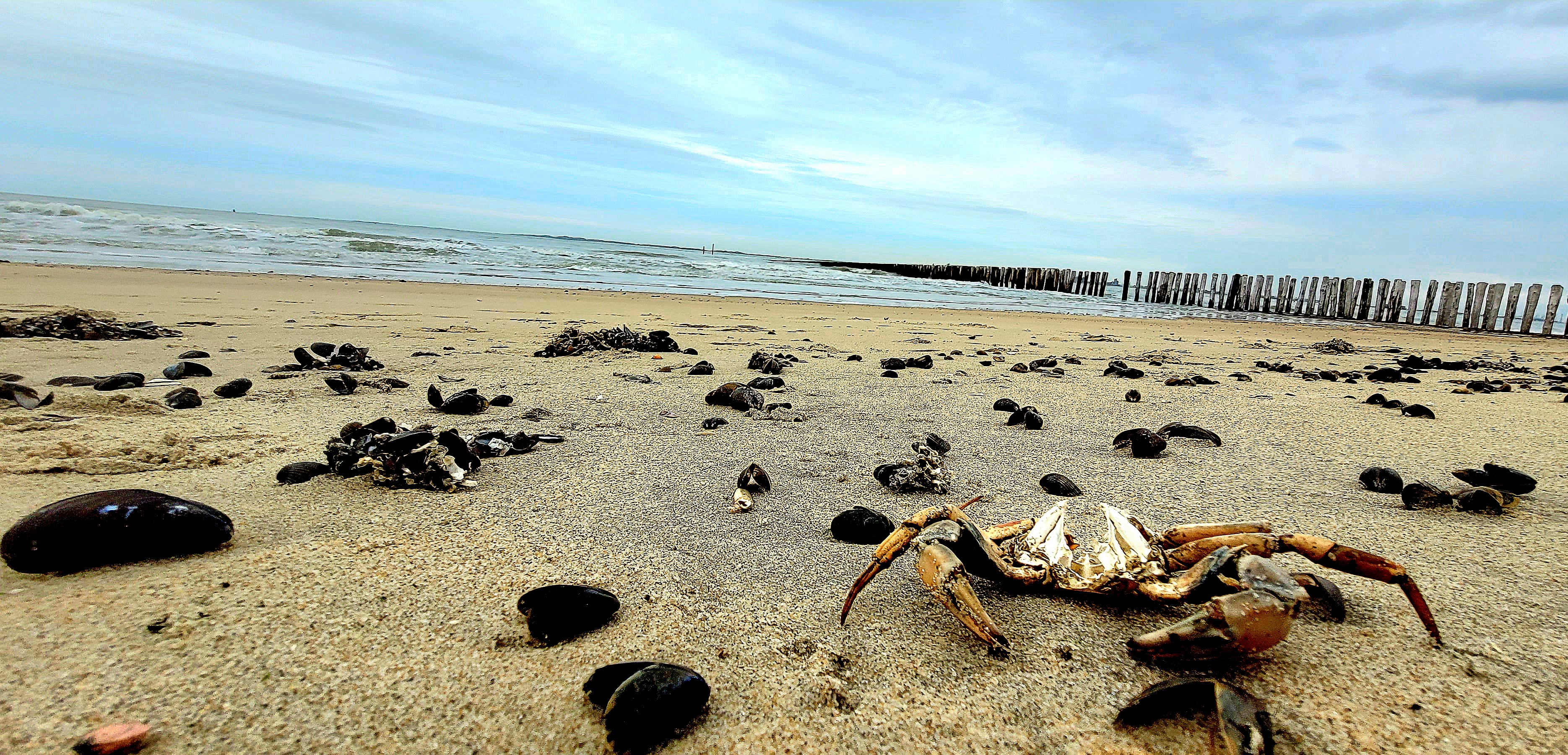 Zondagavond bestaat uit een ont-moeting met mezelf op het strand in Breskens. Ik neem belachelijk veel tijd om een krabbenkarkasje op de foto te krijgen. Het beestje krijgt geen rust met een post mortem carrière als fotomodel.