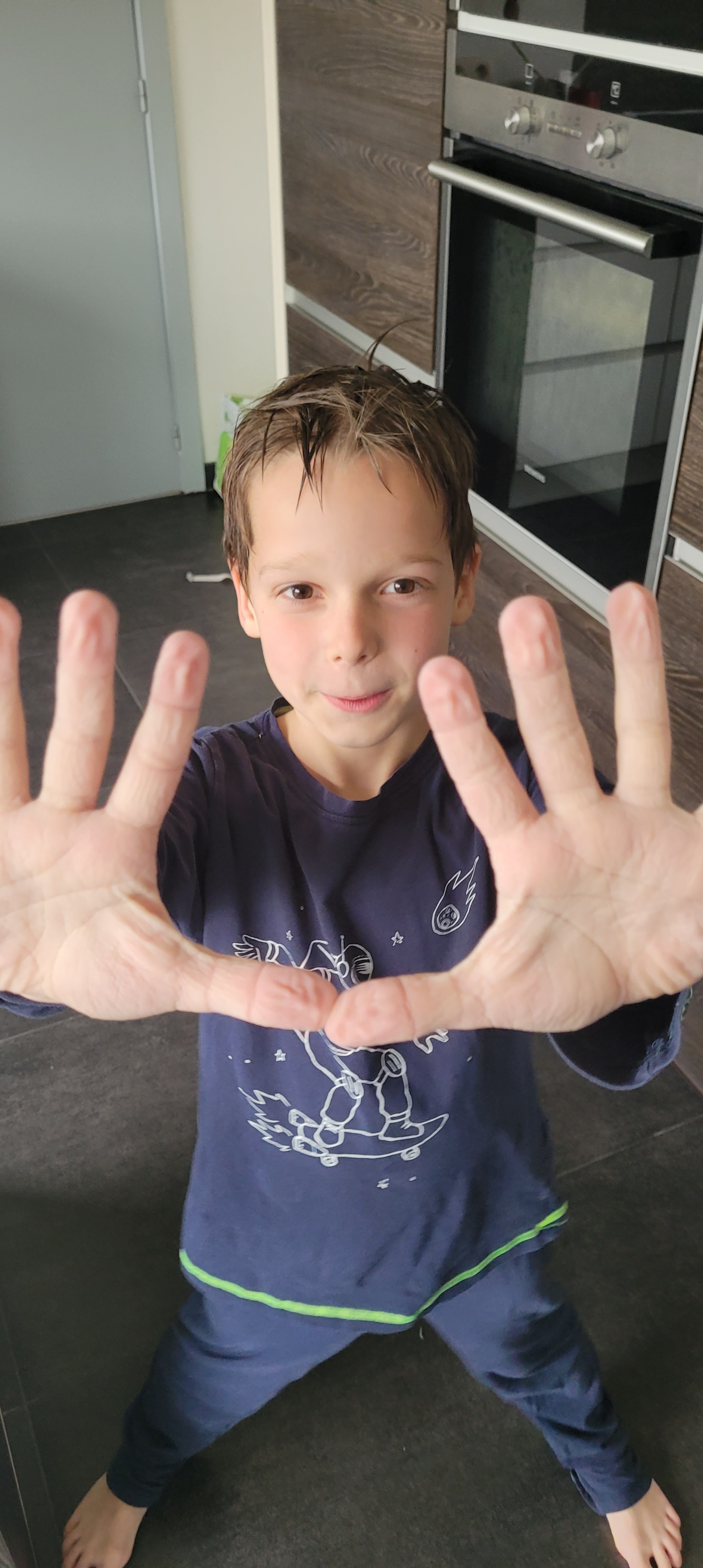 Linus was jarig en deze ochtend vierden we dit met een ontbijtje met zijn meter en haar gezin. De rest van de dag spendeerden we thuis. Hij speelde met zijn cadeautjes en nam een uitgebreid bad terwijl hij luisterverhaaltjes liet afspelen. Podcasting voor kinderen noem ik het soms. Daarna toonde hij me zijn “verkrompelde handen”.