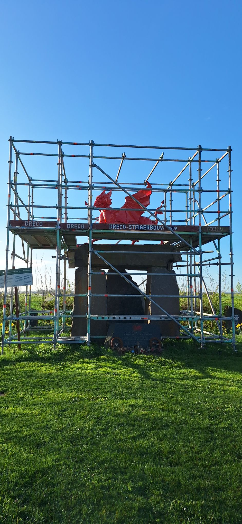 De rode draak van het Welsh monument op het einde van mijn straat werd gerenoveerd deze week. De jaren hadden zijn kleur doen vervagen. Na weken gekooid zitten heeft hij eindelijk zijn kleur teruggekregen. Misschien is het goed om eventjes in afzondering te gaan als je de kleur in het leven niet meer vindt? Of misschien is het beter om juist in verbinding te gaan met anderen. Ik zal het eens moeten vragen als hij weer los is.