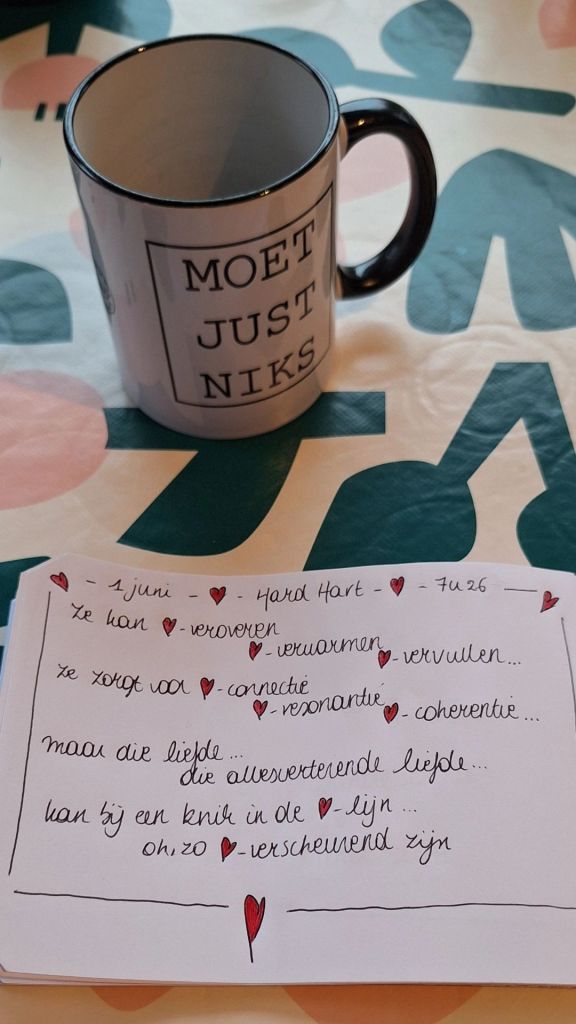 Elkaar voldoende loslaten en toch elke dag voor elkaar kiezen is hoe ik het liefste mijn relatie beleef.