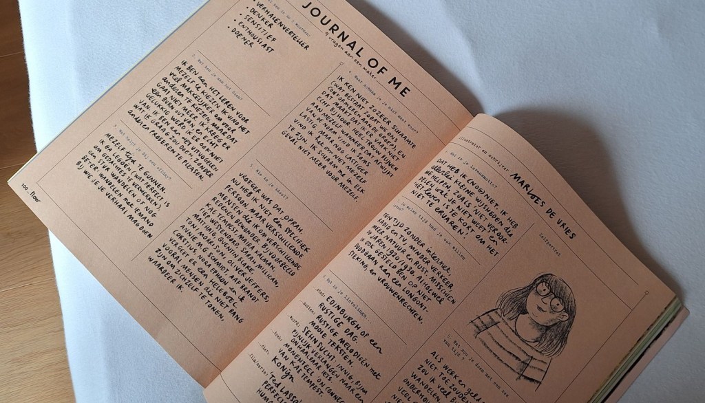 In Flow staat maandelijks een item “Journal of me” waarin een (bekende?) NL’er altijd dezelfde vragen beantwoordt. Een gemakkelijke schrijfoefening maar ook een fijne denkopdracht. Voel je vrij om mee te doen met deze “Journal of me”.